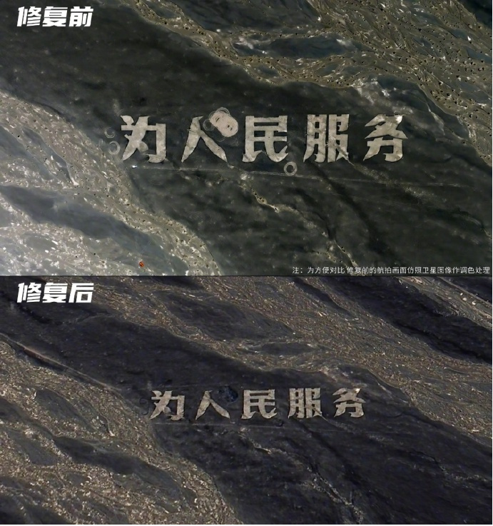 (新疆哈密戈壁灘“為人民服務(wù)”標(biāo)語遭破壞相關(guān)對比圖)