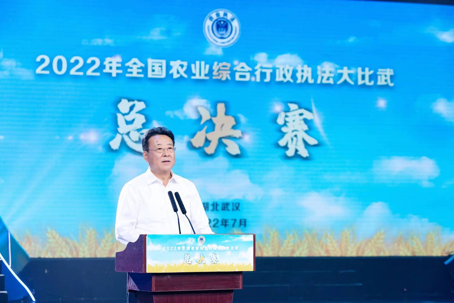7月6日,由農(nóng)業(yè)農(nóng)村部、湖北省人民政府主辦的2022年全國農(nóng)業(yè)綜合行政執(zhí)法大比武總決賽在湖北省武漢市舉辦。農(nóng)業(yè)農(nóng)村部國家首席獸醫(yī)師(官)李金祥出席活動并講話。