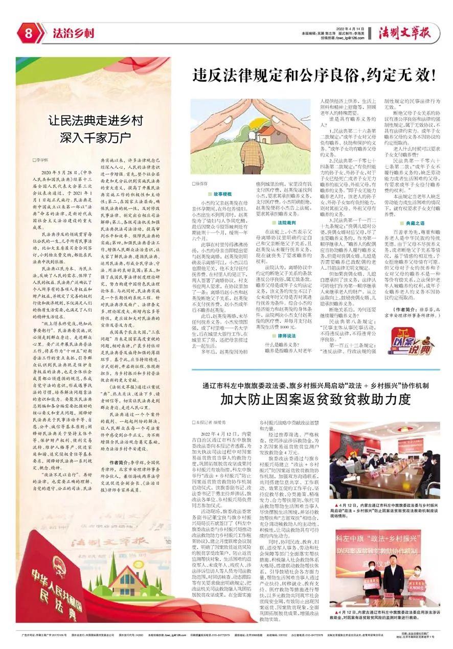 《法制文萃報(bào)》通過以案說“典”、熱點(diǎn)關(guān)注、送法下鄉(xiāng)、讀者回信等,切實(shí)讓民法典走到群眾身邊、走進(jìn)人民心里。