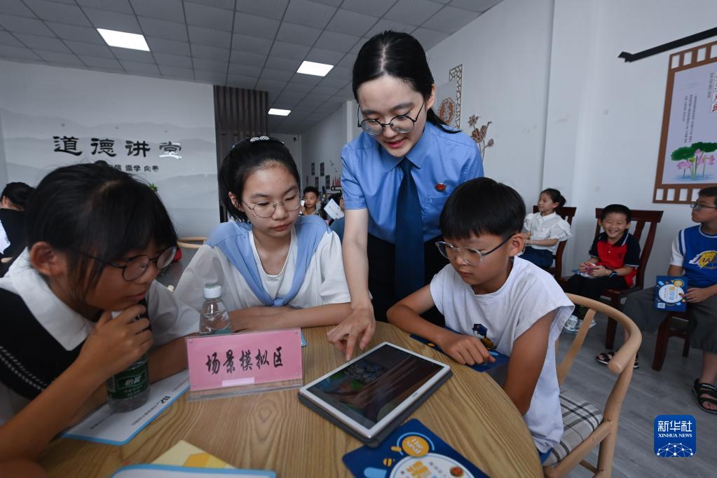 8月11日,湖州市南潯區(qū)檢察院第三檢察部副主任周思娟通過場景模擬游戲的形式,為黃泥兜村的孩子們普及未成年人保護(hù)知識(shí)。