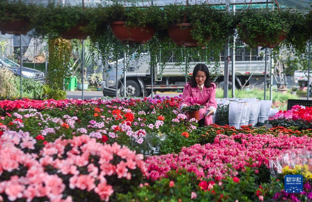 11月28日,在金華市金東區(qū)澧浦花木城的花藝苗圃內(nèi),游客在選購花卉。