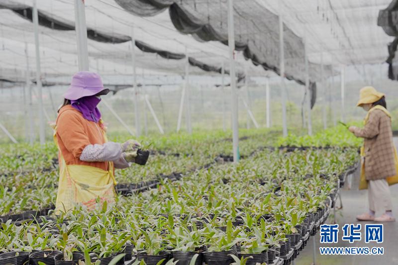當(dāng)?shù)卮迕裨谂f村蘭花基地就業(yè)。