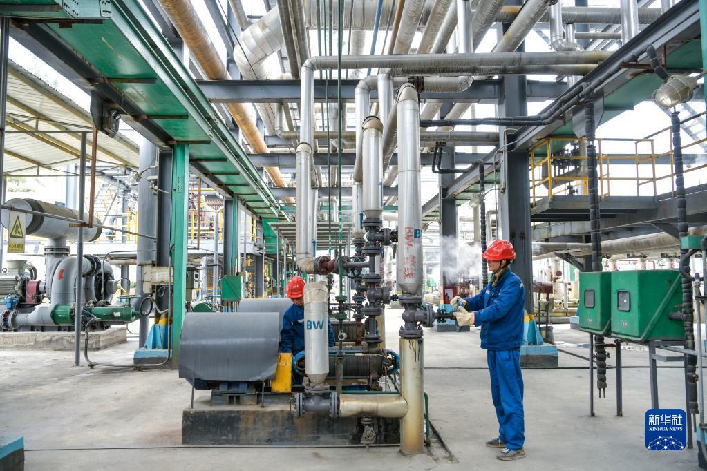 工人在貴州省天柱工業(yè)園區(qū)一家化工企業(yè)檢查冷卻設備(2月28日攝)。記者 楊文斌 攝