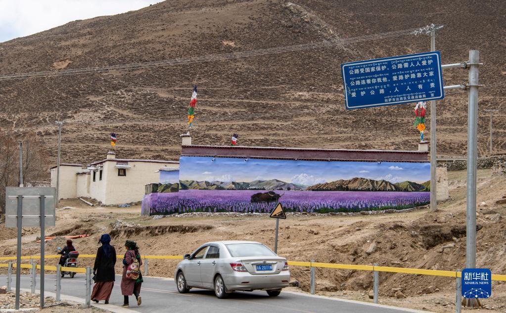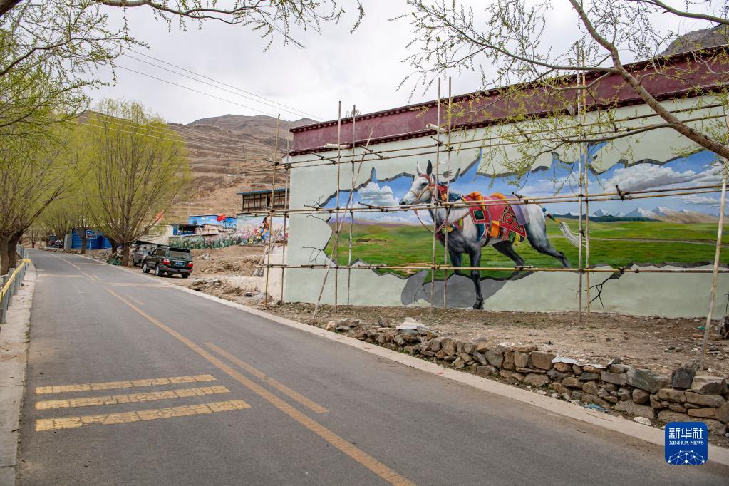 這是4月10日在拉薩市達孜區(qū)章多鄉(xiāng)恰村拍攝的墻畫。記者 晉美多吉 攝