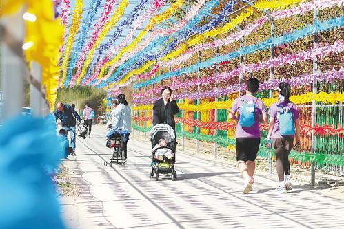 日前,游客在香河縣蔣辛屯鎮(zhèn)北李莊村水岸潮白景區(qū)內(nèi)散步游玩。 通訊員 韓博陽 攝