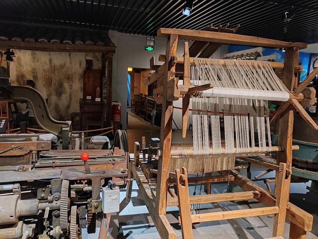 荷湖鄉(xiāng)土文化博物館里展示的手工織機(jī)和鄉(xiāng)鎮(zhèn)企業(yè)用過(guò)的紡織機(jī)器。記者 馮源 攝