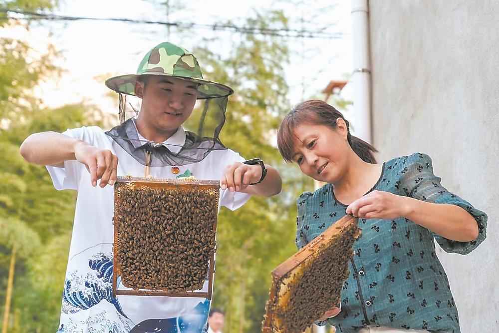 通過接單嘗到甜頭的,還有黨溪村村民徐遠(yuǎn)壽。徐遠(yuǎn)壽養(yǎng)蜂多年,以往都是自產(chǎn)自銷,蜂蜜價格不高,還經(jīng)常找不到買家?!耙郧懊抗镒疃噘u到120元左右,只能靠一些親朋好友幫忙推銷。也有老板想要批量購買,但是我們銷量又跟不上?,F(xiàn)在,我加入了村里領(lǐng)辦的合作社,可以使用鄉(xiāng)里統(tǒng)一打造的‘樵夫家園’品牌,村里統(tǒng)一派單、統(tǒng)一收購、統(tǒng)一銷售,我們只管養(yǎng)蜂、產(chǎn)蜜,一公斤可以賣到180元左右,還不愁銷路?!毙爝h(yuǎn)壽告訴記者。