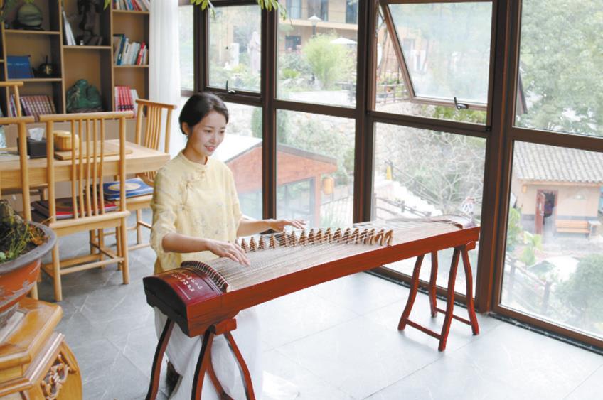 游客在民宿彈琴,享受悠閑時(shí)光 通訊員 吳彥峰 攝