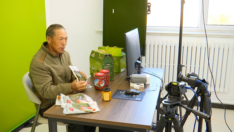 村民當(dāng)起“帶貨主播”,在線上向消費者們介紹當(dāng)?shù)赝撂禺a(chǎn)(承德廣播電視臺供圖)