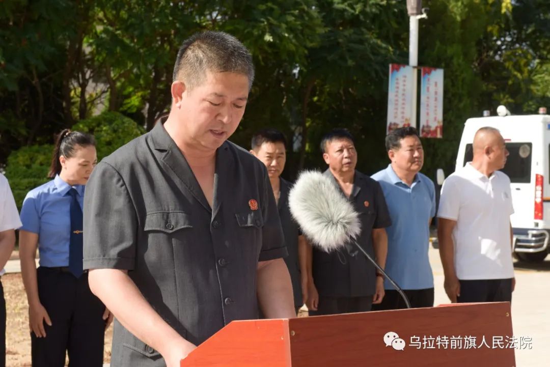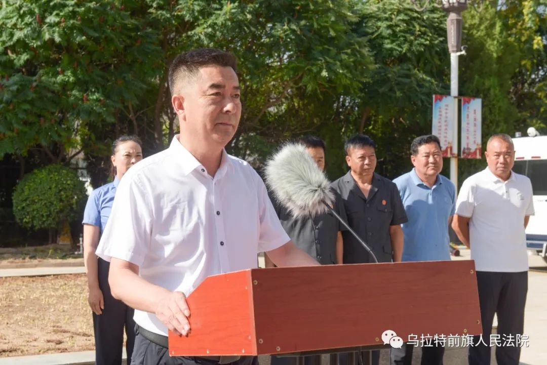 8月7日上午8:30,烏拉特前旗人民法院舉行了執(zhí)行專項(xiàng)行動(dòng)啟動(dòng)儀式。旗政協(xié)主席金山、旗委副書記政法委書記秦淮、旗人大常委會(huì)副主任高雷、旗政府副旗長(zhǎng)公安局局長(zhǎng)劉煜、旗檢察院檢察長(zhǎng)楊弘年、旗人民法院院長(zhǎng)張海平、旗司法局局長(zhǎng)吉仁浩雅爾出席啟動(dòng)儀式。旗人民法院領(lǐng)導(dǎo)班子成員、環(huán)節(jié)干部、執(zhí)行局、法警大隊(duì)全體干警參加了儀式。部分市旗人大代表、政協(xié)委員、紀(jì)委監(jiān)委、政法委、公證處工作人員、媒體記者受邀參加啟動(dòng)儀式并全程參與執(zhí)行行動(dòng),見證執(zhí)行全過程。