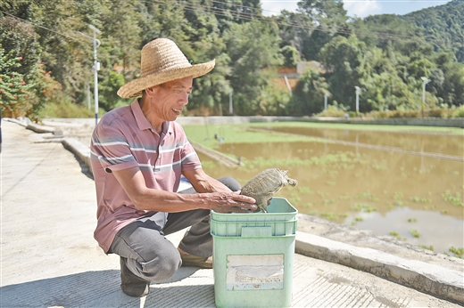 基地管理員查看甲魚個頭及狀態(tài)