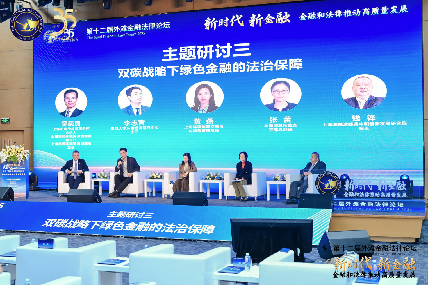 “雙碳戰(zhàn)略下綠色金融的法治保障”主題研討環(huán)節(jié),由上海市金茂律師事務(wù)所合伙人吳榮良律師主持,來自復(fù)旦大學(xué)綠色金融研究中心的李志青教授、上海環(huán)境能源交易所法律監(jiān)管部黃燕部長、上海清算所業(yè)務(wù)三部張蕾總經(jīng)理、上海浦東達峰碳中和創(chuàng)新發(fā)展研究院錢鋒院長共同參與研討。