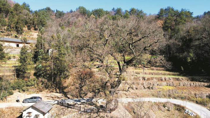被圍起來(lái)保護(hù)的千年古樹(shù)