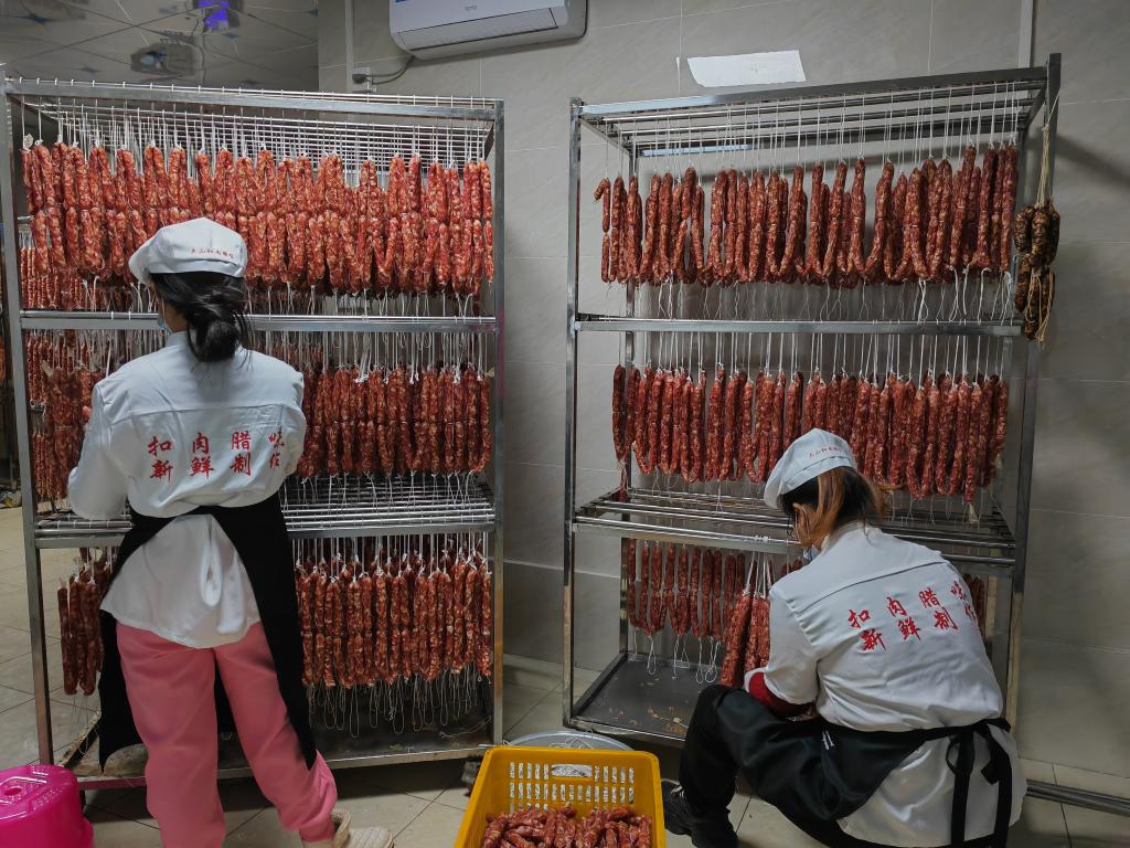 做好土特產(chǎn)文章,發(fā)展特色產(chǎn)業(yè)是實(shí)現(xiàn)鄉(xiāng)村振興的一條重要途徑。在陸川縣,當(dāng)?shù)貒@國(guó)家地理標(biāo)志產(chǎn)品陸川豬不斷助推村民致富增收。切割、生產(chǎn)、烘干、包裝……在位于陸川縣珊羅鎮(zhèn)大山村的玉林市浚淇食品有限公司,工人們正忙著生產(chǎn)和包裝臘腸?!澳觋P(guān)將至,臘肉、臘腸、扣肉的生產(chǎn)也迎來(lái)旺季?!惫矩?fù)責(zé)人梁滬芳說(shuō)。