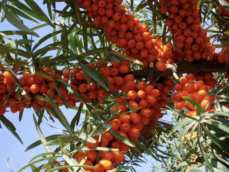 在最貧瘠的土地上生長(zhǎng)出茂盛的枝葉和營(yíng)養(yǎng)豐富的果實(shí),是沙棘這種植物的真實(shí)寫照?!皩L簟丙}堿、荒漠等條件惡劣的土地扎根,形成“地上一把傘,地面一層氈,地下一張網(wǎng)”,防止水土流失,保護(hù)生態(tài)環(huán)境;同時(shí)沙棘“渾身是寶”,澤福一方百姓,帶動(dòng)一地經(jīng)濟(jì);更憑借藥食同源的特性,營(yíng)養(yǎng)大眾,為消費(fèi)者帶來(lái)有益身體健康的沙棘產(chǎn)品。