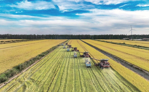 其次是經(jīng)營模式。江蘇農墾實施推廣“五統(tǒng)一”模式,即統(tǒng)一作物和品種布局、統(tǒng)一種子和農資供應、統(tǒng)一農機作業(yè)標準、統(tǒng)一農業(yè)生產(chǎn)措施、統(tǒng)一農產(chǎn)品銷售,從全局進行生產(chǎn)布局調度,充分發(fā)揮農業(yè)生產(chǎn)組織化、標準化優(yōu)勢,保障了農業(yè)生產(chǎn)經(jīng)營措施落實落細不走樣。