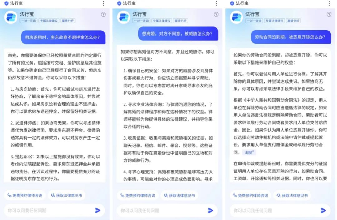 此外,面對用戶個性化的法律服務需求,法行寶能夠通過深入了解用戶的具體需求和情況,提供定制化的法律咨詢意見書?!斑@些意見書不僅考慮到法律條款的適用,還結合了用戶的實際情況和利益訴求,為用戶提供最為合適的法律建議?!鄙鲜黾夹g負責人表示。