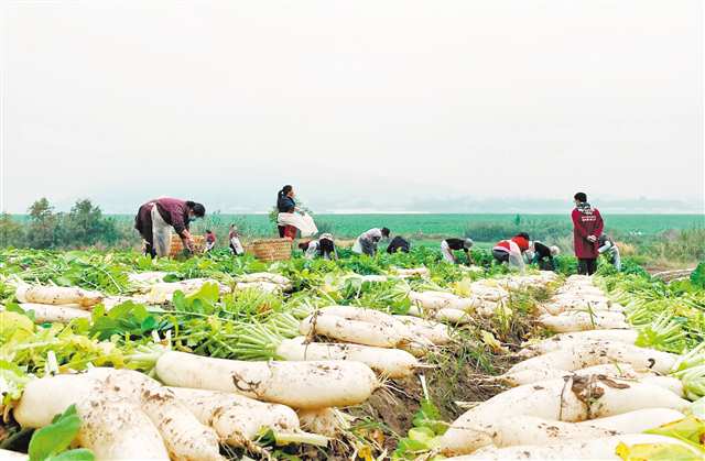 銅梁區(qū)高樓鎮(zhèn)涪江河畔中壩,農(nóng)民采收蘿卜(資料圖片)通訊員 趙武強(qiáng) 李拉拉 攝