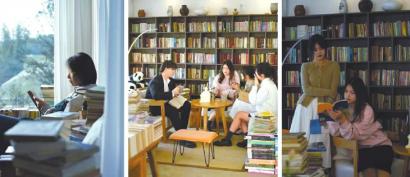 有了建筑,如何讓空間活起來(lái)?富有趣味的活動(dòng)自然少不了。劉長(zhǎng)青喜歡藏書(shū),自己的藏書(shū)就達(dá)3萬(wàn)余冊(cè)。為此,他聯(lián)合新都區(qū)圖書(shū)館,把鄉(xiāng)村圖書(shū)館搬進(jìn)青榮藝術(shù)空間。如今這座圖書(shū)館分館里面不僅有文學(xué)新書(shū)、雜志等,還有老書(shū)、古書(shū)和絕版書(shū)?!安簧贂?shū)迷喜歡來(lái)這里淘書(shū)?!眲㈤L(zhǎng)青說(shuō),圖書(shū)館的藏書(shū)類型也費(fèi)了一番心思,“主要是藝術(shù)類和文學(xué)類?!彼忉專@樣的類別更對(duì)前來(lái)空間的人的“胃口”。圖書(shū)館被裝修得如歸家一般親切,蒲團(tuán)墊、沙發(fā)讓人們可以自由坐躺,開(kāi)啟一段閑暇的閱讀時(shí)光。