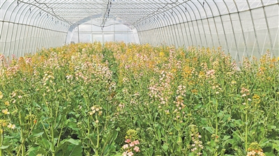 據(jù)科研團(tuán)隊負(fù)責(zé)人張冬青研究員介紹,科研人員采用精準(zhǔn)聚合育種方法,把不同花色基因重新組合,促使油菜花的花色種類不斷更新豐富。目前,團(tuán)隊已培育出高桿彩色油菜和矮桿彩色油菜不同花色各9種,具有花瓣大、色澤艷、香味濃郁、花量足、產(chǎn)量優(yōu)等特性,觀賞價值和經(jīng)濟(jì)價值全面升級。彩色油菜除了不同花色帶來的視覺沖擊感外,植株健壯、分枝多、產(chǎn)量和含油量接近生產(chǎn)上主栽品種。