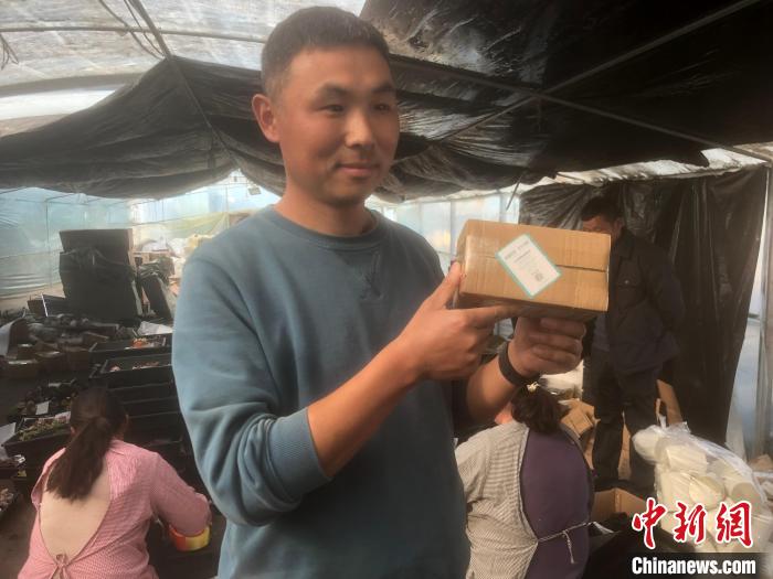 花農(nóng)展示快遞上的“誠信標簽” 劉林 攝
