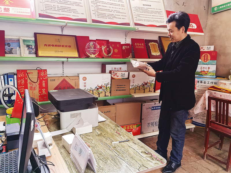 王博今年42歲,學校畢業(yè)后,曾經(jīng)打過工,也做過小生意。他本就是農(nóng)村娃,對家鄉(xiāng)有著深深的眷戀。返鄉(xiāng)創(chuàng)業(yè)的念頭一旦萌生,王博就遵從內(nèi)心的召喚,回到了家鄉(xiāng)。2018年,隨著三原縣電子商務進農(nóng)村綜合項目初步落地,王博敏銳地意識到電子商務在農(nóng)村的發(fā)展前景,他嘗試著在村里開網(wǎng)店。