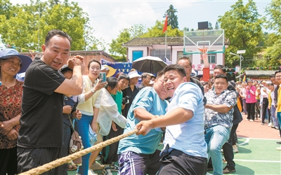 游客在大水鄉(xiāng)后壩村參加鄉(xiāng)村避暑季全民運(yùn)動會 李光輝 攝
