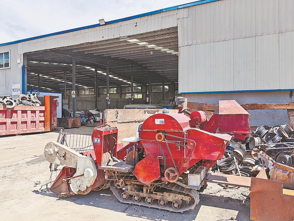 三明市三元區(qū)恒德順再生資源有限公司內(nèi)一臺將被拆解的廢舊履帶式收割機(jī) 記者 賴昊拓 攝