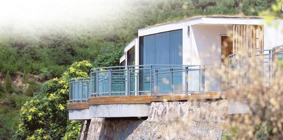 森棲小鎮(zhèn)“懸”于山崖邊的簡(jiǎn)約方形地球倉