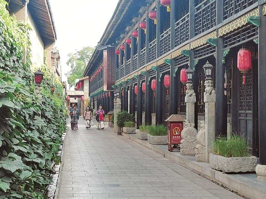 游客在平遙會(huì)館深邃的巷道旅拍