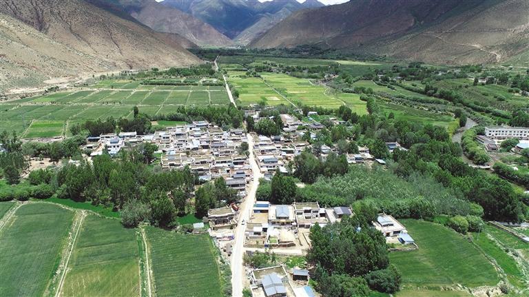 位于溫曲河谷的山南市乃東區(qū)結(jié)巴鄉(xiāng)格桑村1組俯瞰圖 通訊員 潘高 記者 汪純 攝