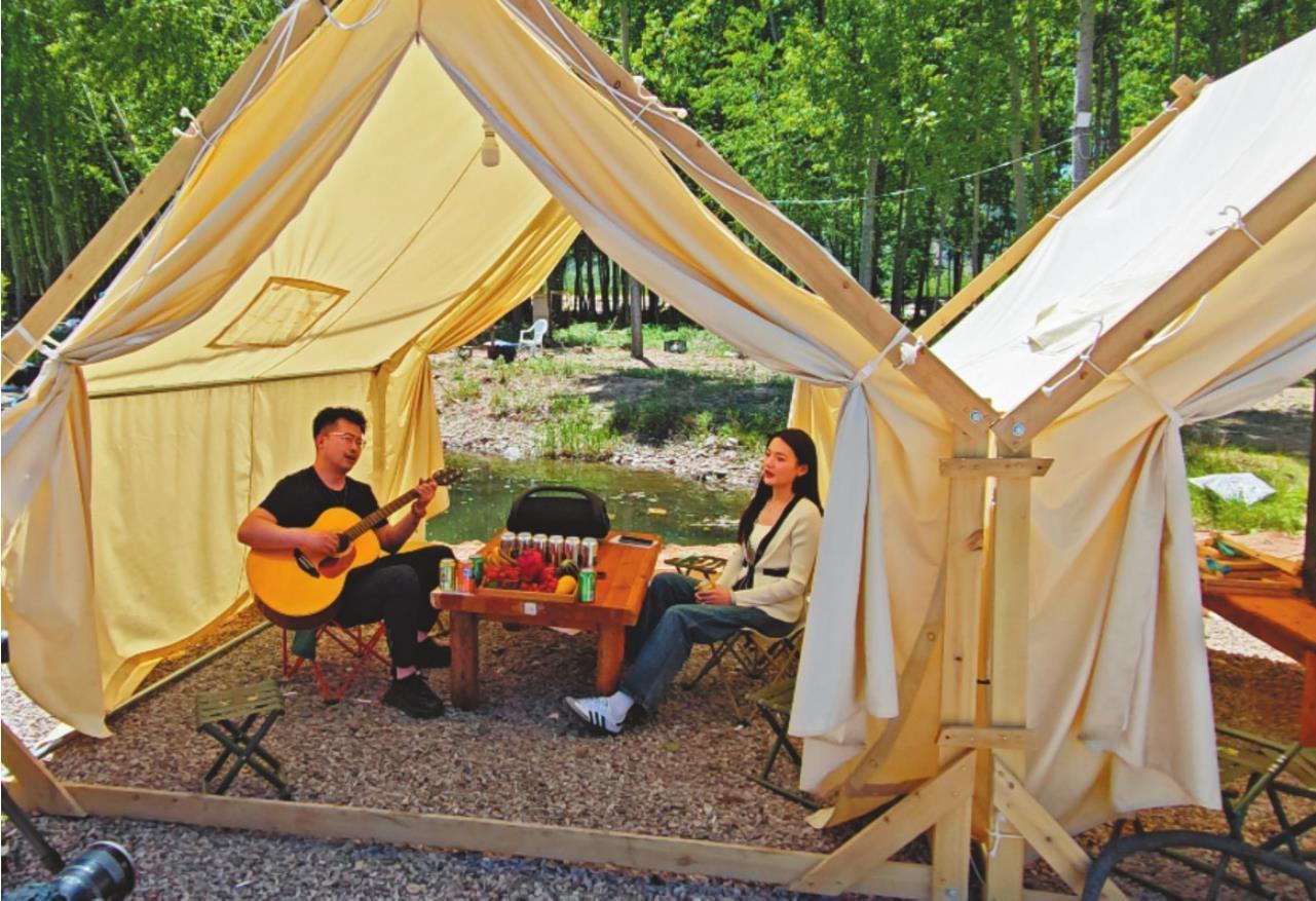在范家滿族鄉(xiāng)今年新建的露營(yíng)地里,游客盡享悠閑美好的假日時(shí)光。(綏中縣委宣傳部供圖)