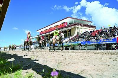 據(jù)了解,今年主辦方從青海等地邀請了特色高原馬種前來展示?;顒蝇F(xiàn)場,記者看到,騎手們身著民族服飾,英姿颯爽;駿馬裝飾五色綢帶,躍躍欲試;觀眾扶老攜幼,笑逐顏開。今年的賽馬節(jié)還新增了馬上刀術、馬上烏爾朵、騎馬射擊、騎馬拾哈達等四項賽馬競技活動。