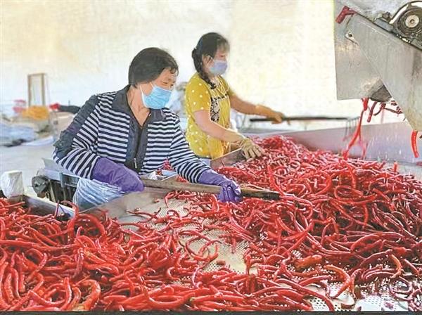 小杜余溝村辣椒加工基地內(nèi),村民正在加工辣椒 通訊員 雅靜 攝