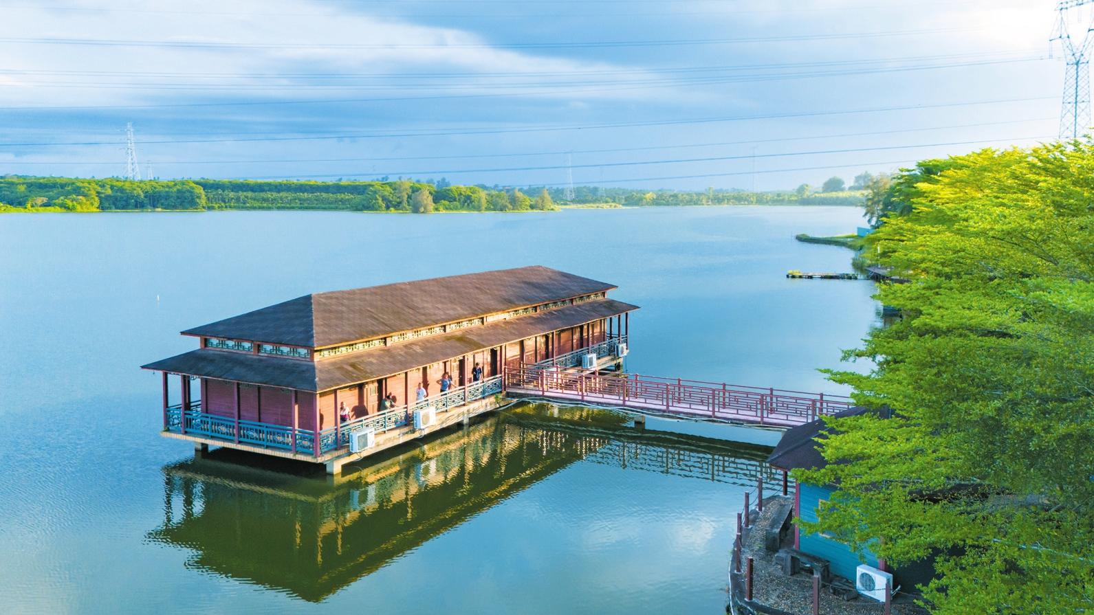 25日,走進位于龍華區(qū)新坡鎮(zhèn)的??谔敦S洋火山濕地農(nóng)莊,一幅人與自然和諧共生的田園風(fēng)景畫映入眼簾。在民宿區(qū)域,一座座獨棟木屋綠植環(huán)繞,屋檐懸掛著古色古香的燈籠,給人不一樣的感覺。潭豐洋火山濕地農(nóng)莊負責(zé)人王作學(xué)介紹,通過濕地科普、團建露營、研學(xué)教育等方式,農(nóng)莊吸引了越來越多人走進濕地、了解濕地、愛護濕地。