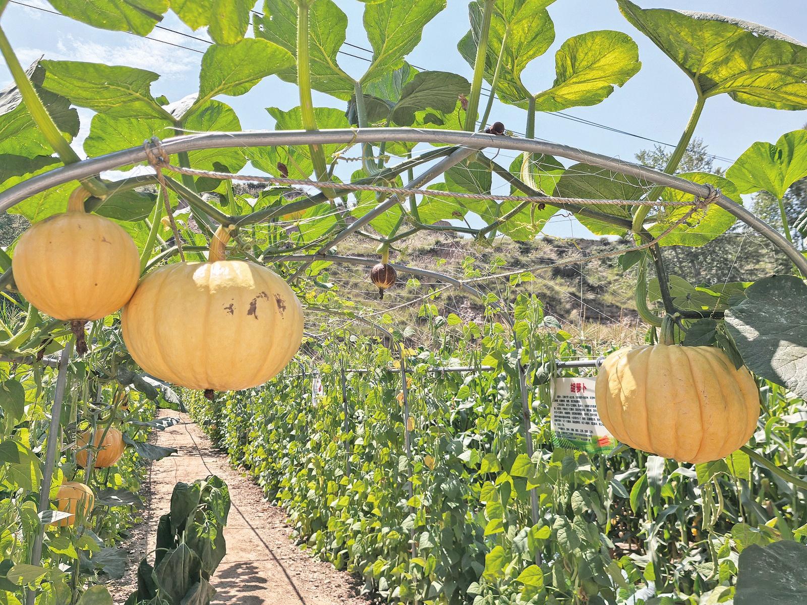 在技術(shù)人員指導(dǎo)下生長(zhǎng)出的大南瓜