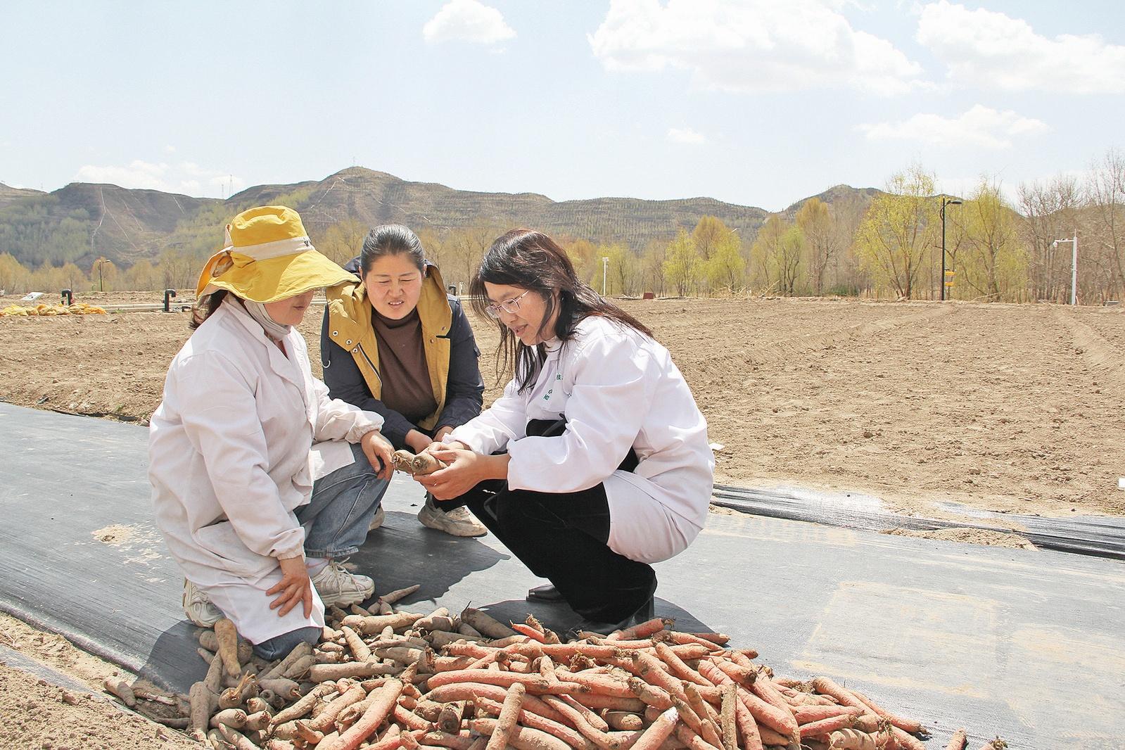技術(shù)人員查看胡蘿卜新品種