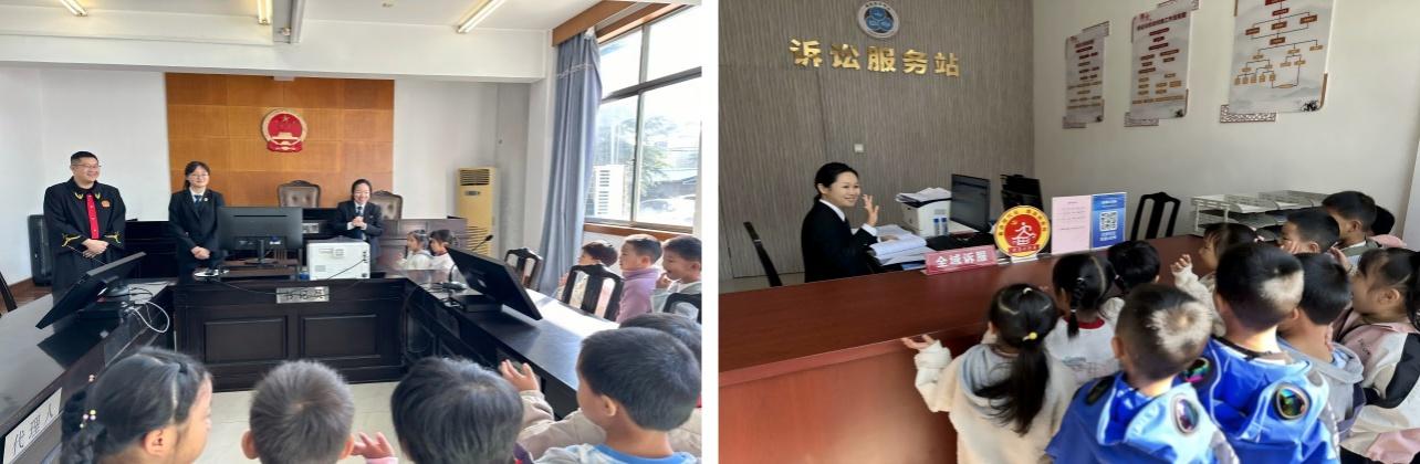 一進(jìn)入法庭,孩子們便被那莊嚴(yán)肅穆的氛圍深深感染。他們滿懷著好奇,仔細(xì)觀察著周圍的一切,心中對法治的敬畏與向往油然而生。在工作人員的精心安排下,小朋友們依次參觀了調(diào)解室、庭審室,初步了解了法庭的職責(zé)以及相關(guān)法律常識。孩子們聽得全神貫注,不時提出各種問題,與工作人員積極互動交流。