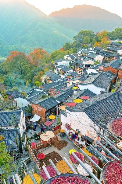 江西婺源縣篁嶺村曬秋場(chǎng)景 黃宇堯 攝