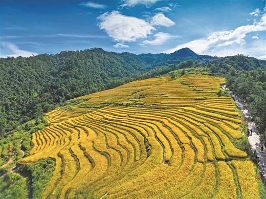 金黃的稻浪隨風(fēng)搖曳,飄香的瓜果沁人心脾,辛勤的農(nóng)人載歌載舞……晚秋時(shí)節(jié),位于十萬(wàn)大山北麓的廣西壯族自治區(qū)防城港市上思縣,處處彌漫著豐收的喜悅。