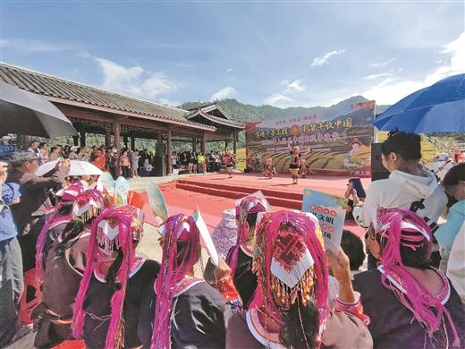 10月26日,2024年上思縣中國(guó)農(nóng)民豐收節(jié)在該縣最為偏遠(yuǎn)的村屯——南屏瑤族鄉(xiāng)常隆村百馬屯舉辦。在這里,百馬梯田金黃色的稻浪隨風(fēng)起伏,一片豐收的景象?,幾迦罕娚碇?jié)日盛裝,載歌載舞,與來(lái)自五湖四海的游客共同歡慶。