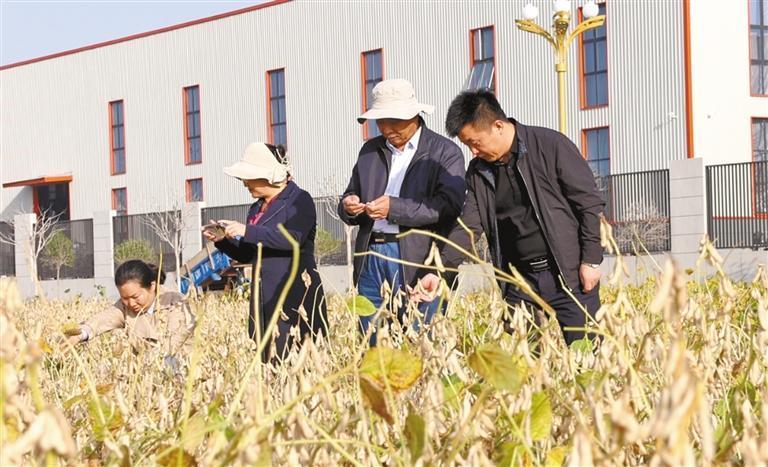專家在岐山縣對(duì)“寶豆10號(hào)”百畝大豆種植示范田進(jìn)行現(xiàn)場實(shí)收測產(chǎn)(資料照片)受訪者供圖
