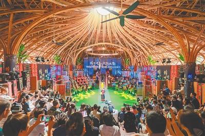 五指山市水滿鄉(xiāng)毛納村環(huán)形劇場內的村秀現(xiàn)場(主辦方供圖)