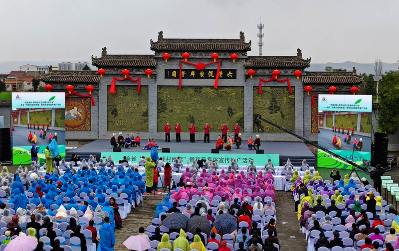 活動現(xiàn)場,近千余名干部群眾齊聚雍城,百余名農(nóng)民群眾唱得響亮,氣氛熱烈。一曲《相約龍頭村》唱出了對家鄉(xiāng)的熱愛和贊美,拉開了活動序幕。由村民自編自導(dǎo)自演的歌曲、舞蹈、戲曲、鼓樂等拿手好戲連番登臺,原汁原味演繹了農(nóng)民群眾的生產(chǎn)生活,為現(xiàn)場的觀眾帶來了一場精彩絕倫的視聽盛宴,讓群眾在家門口樂享了鄉(xiāng)土味、煙火氣十足的文化大餐,實(shí)現(xiàn)了“群眾看戲”和“群眾演戲”的完美結(jié)合。歌伴舞《大地流彩靈動鄉(xiāng)村》唱出了新時代廣大農(nóng)民群眾追求幸福、昂揚(yáng)向上的精神風(fēng)貌,《百善孝為先》《家風(fēng)》《紅棗棗》《我想能我想篩》《在希望的田野上》等歌曲,旋律時而宛轉(zhuǎn)悠揚(yáng)、空靈曼妙,時而激昂澎湃、振奮人心,時而舒緩低沉、柔情似水,每一個音符都在訴說著鄉(xiāng)音,每一曲都飽含著對三秦大地深沉的愛,余音繞梁。廣場舞《泥塑人家》和戲劇《秦瓊觀陣》,充分展示了國家級非物質(zhì)文化遺產(chǎn)名錄鳳翔泥塑、杖頭木偶的無限魅力。石家木偶戲、眉戶現(xiàn)代小戲《十二把鐮刀》、西府曲子《表花》、華陰老腔《華陰老腔一聲喊》和鎮(zhèn)安漁鼓《喜看碩果滿枝頭》等地方曲目,全面展現(xiàn)了極具陜西特色、富有農(nóng)趣農(nóng)味的傳統(tǒng)民俗文化和民間藝術(shù),也彰顯了鄉(xiāng)村全面振興的顯著成就,鄉(xiāng)村文化真真正正融入到群眾的“心坎里”。活動過程中,西北農(nóng)林科技大學(xué)學(xué)生代表宣讀了“大學(xué)生服務(wù)鄉(xiāng)村文化振興”倡議書,志愿者代表交流分享了推進(jìn)農(nóng)村移風(fēng)易俗經(jīng)驗(yàn),《大愛》《家有喜事》以群眾喜聞樂見的形式進(jìn)行移風(fēng)易俗宣傳,打通了理論宣講面向群眾、服務(wù)群眾的“最后一公里”。