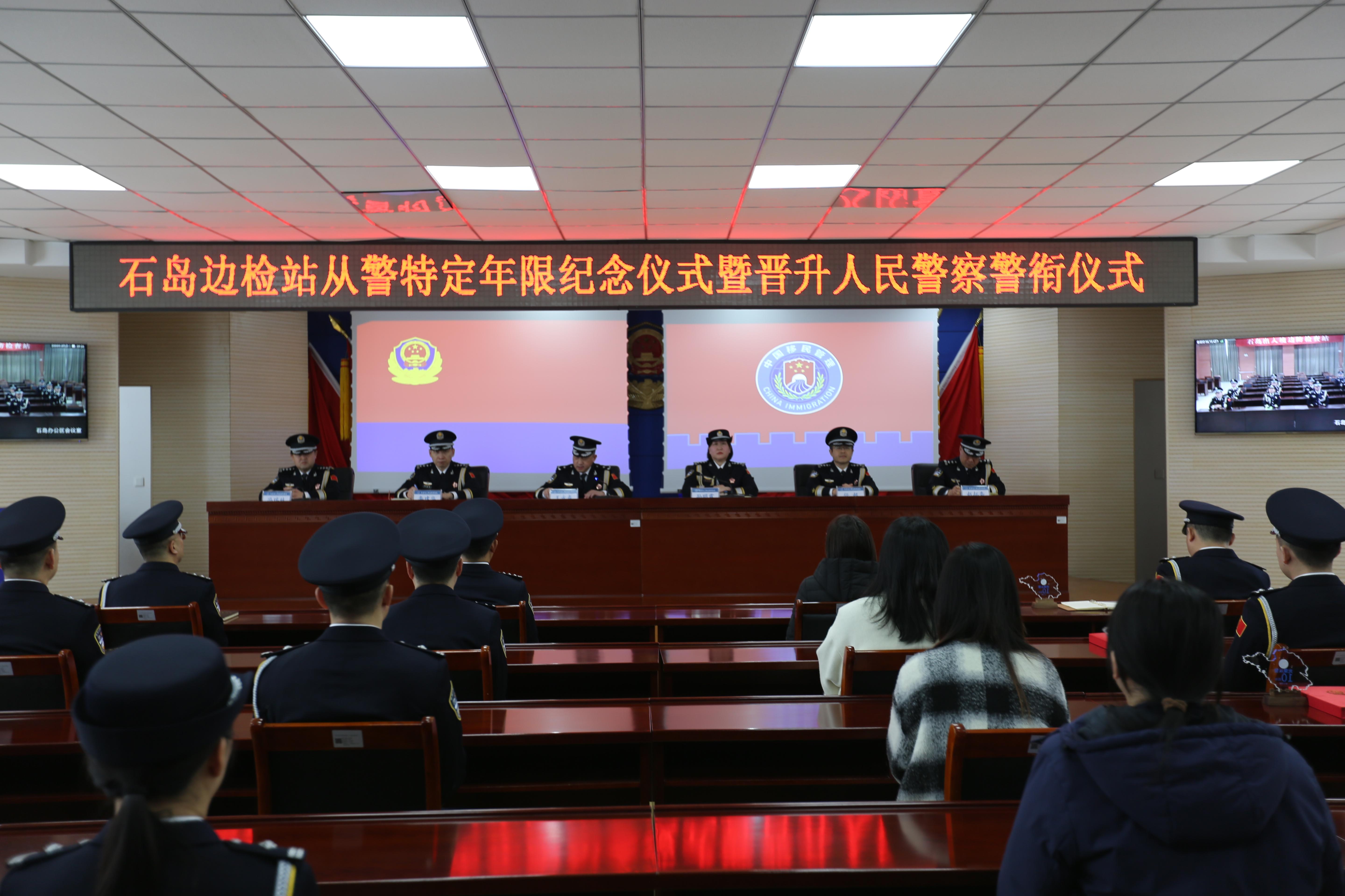 為熱烈慶祝第五個中國人民警察節(jié),進一步激發(fā)隊伍凝聚力戰(zhàn)斗力、提高民警榮譽感歸屬感,1月9日,山東省榮成市石島出入境邊防檢查站舉辦從警特定年限紀念儀式暨晉升人民警察警銜儀式。