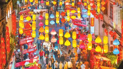 新春佳節(jié)臨近,海南省海口市博愛(ài)路年貨一條街張燈結(jié)彩,吸引了眾多市民游客。張茂 攝