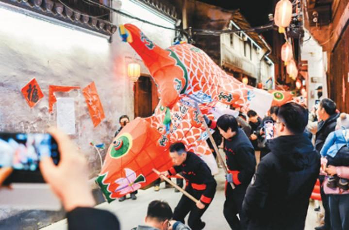 “這次‘村晚’讓我再次感覺到互聯(lián)網(wǎng)強(qiáng)大的傳播力?!编嵍韵Mㄟ^短視頻和直播,進(jìn)一步擴(kuò)大瞻淇魚燈的知名度,讓瞻淇魚燈走出去,讓更多游客走進(jìn)來?!按謇镂穆卯a(chǎn)業(yè)上去了,自然會吸引更多年輕人回鄉(xiāng)創(chuàng)業(yè),年輕人多了,瞻淇魚燈的隊伍才會更加壯大。”說起“村晚”和直播給瞻淇魚燈帶來的發(fā)展機(jī)遇,鄭冬蛟滿懷期待與信心。