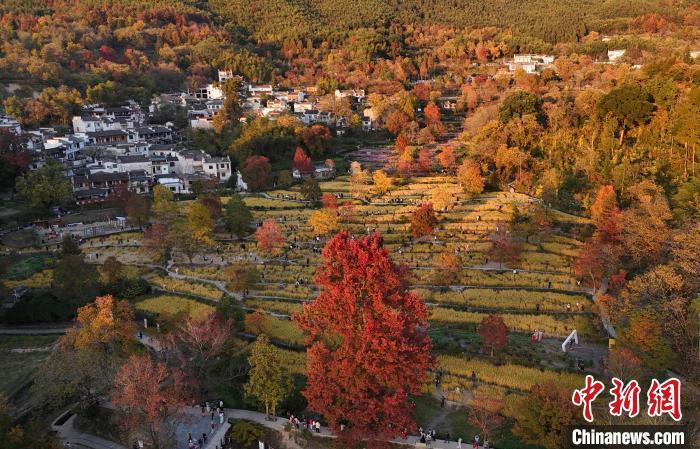 2024年11月11日,初冬時(shí)節(jié),黃山市黟縣塔川村景色斑斕。(無人機(jī)照片)記者 韓蘇原 攝