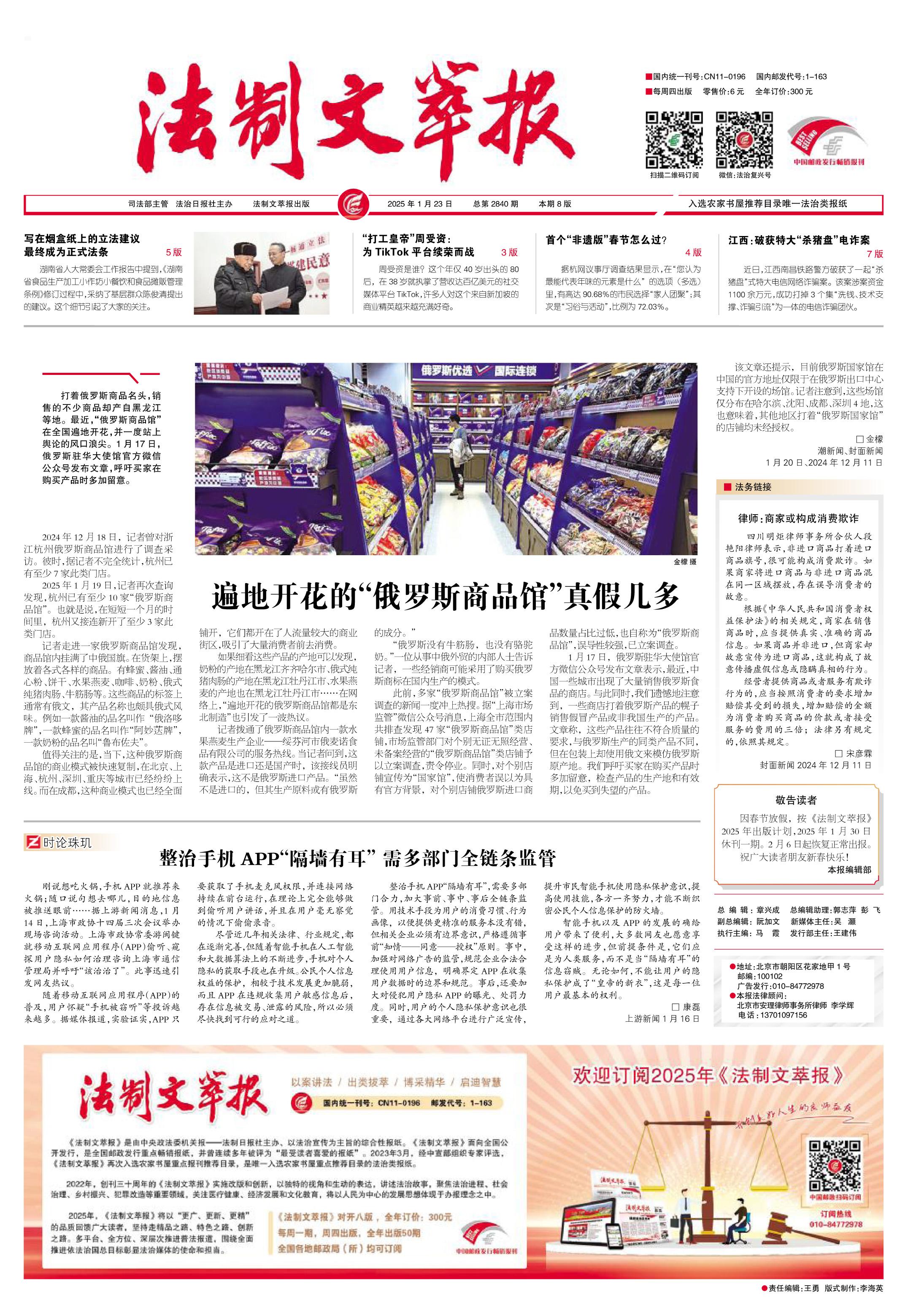 2025年1月23日《法制文萃報》總第2840期1版