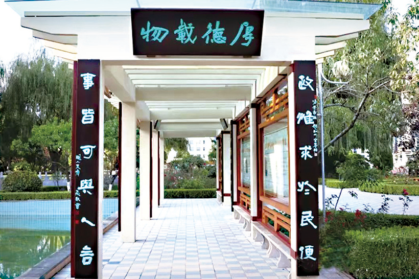 甘肅臨洮人民公園憲法廣場(chǎng)一隅。清梁章鉅題荊州官署聯(lián):政惟求于民便,事皆可與人言。(朱鵬飛 書)圖片來源:青年詩(shī)詞楹聯(lián)